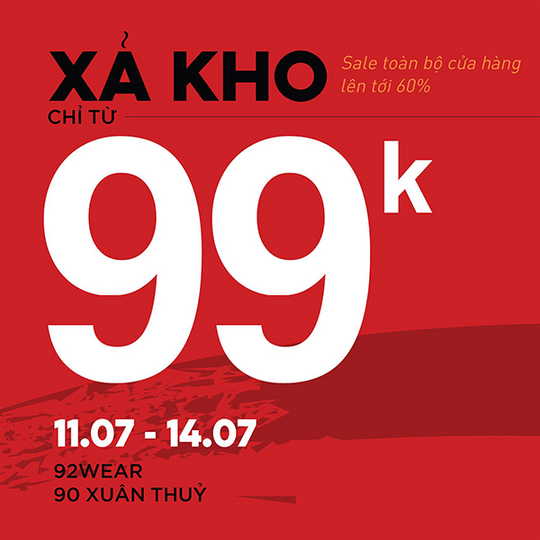92WEAR xả kho chỉ từ 99k nhiều sản phẩm