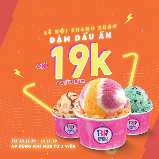 Baskin Robbins ưu đãi 1 viên kem 19k khi mua từ 3 viên