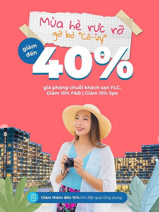 - Giảm tới 40% giá phòng tại chuỗi khách sạn FLC.