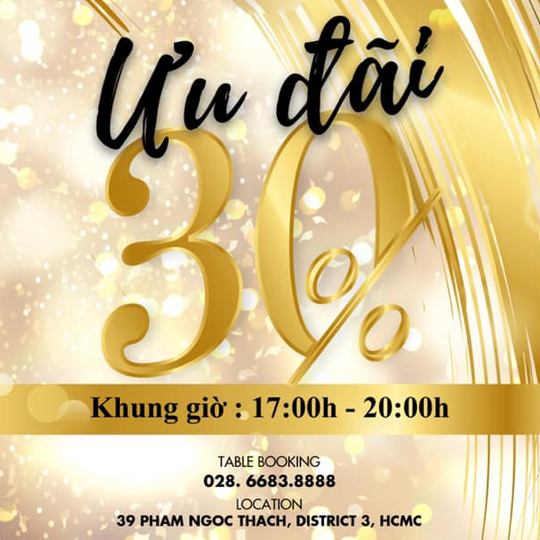 - Giảm 30% trong khung giờ 17:00 - 20:00