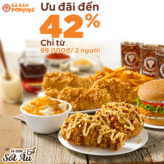 Popeyes combo gà sốt Âu ưu đãi giảm 42%