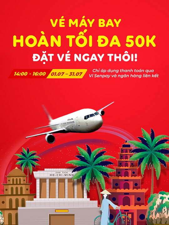- Hoàn tiền 5% tối đa 50K khi đặt vé máy bay.