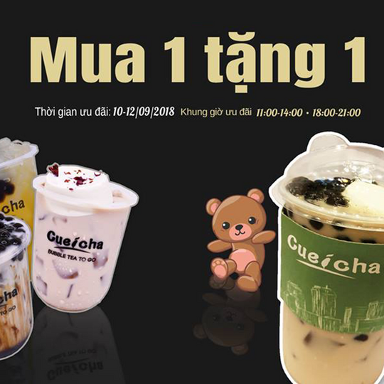 Trà sữa CueiCha mua 1 tặng 1 trong giờ vàng